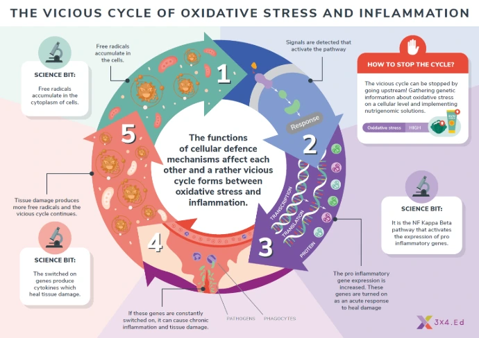 Chronic inflammation and oxidative stress are key drivers of metabolic and degenerative disorders. Our research examines how targeted nutrients regulate reactive oxygen species (ROS), enhance antioxidant defenses, support mitochondrial function, and modulate inflammatory pathways such as NF-κB.